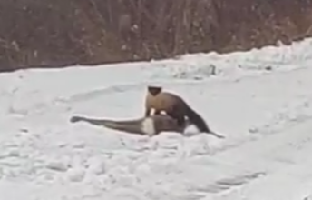 和林職工拍下四只黃喉貂圍獵狍子的視頻影像